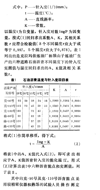 究 ,石油瀝青針入度的對數與溫度有如下的