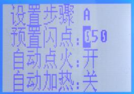 1、設(shè)置步驟應(yīng)設(shè)置為A狀態(tài),自動點火為開狀態(tài),自動加熱為開狀態(tài)。